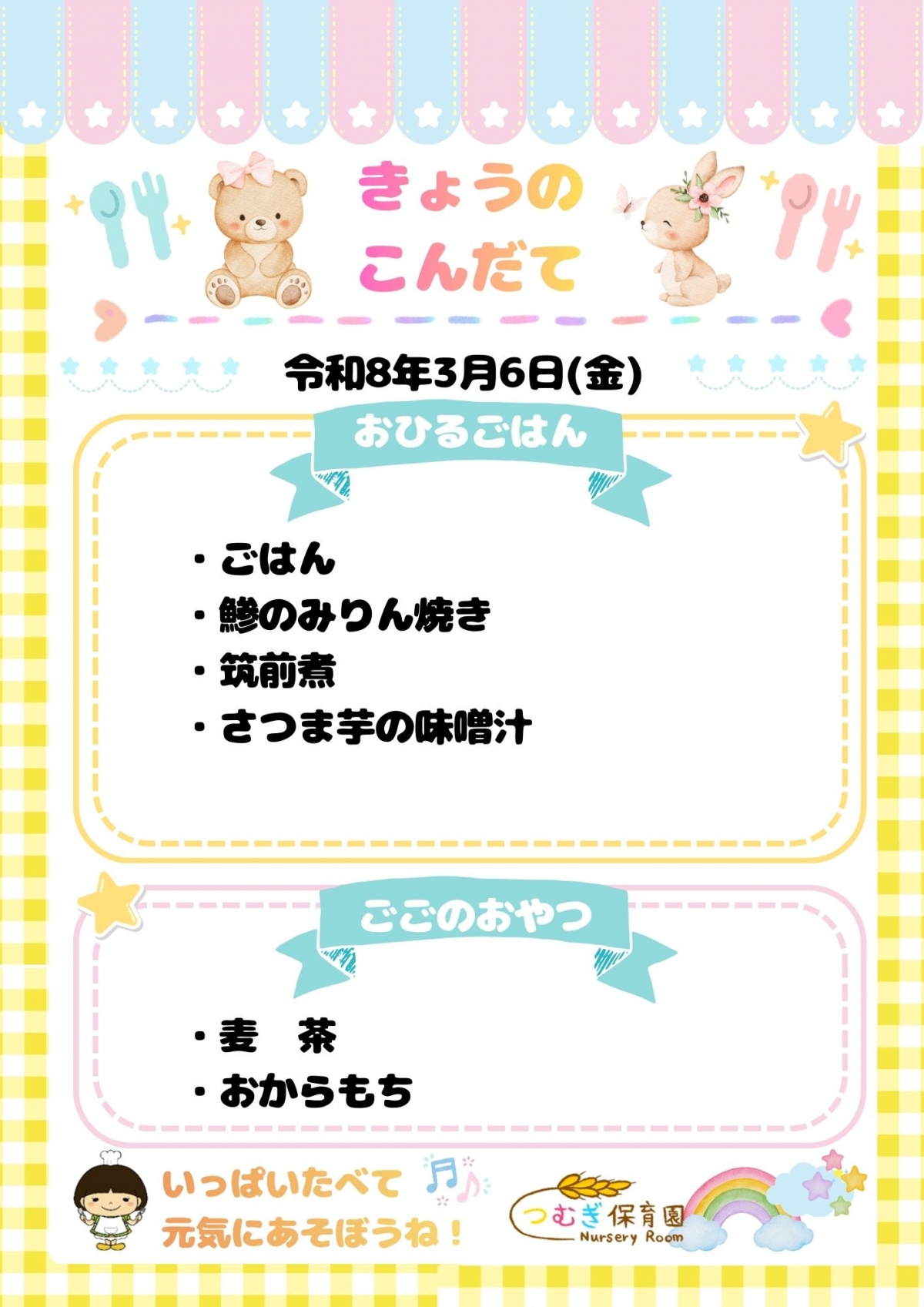 ⭐今日のつむぎ保育園の給食⭐