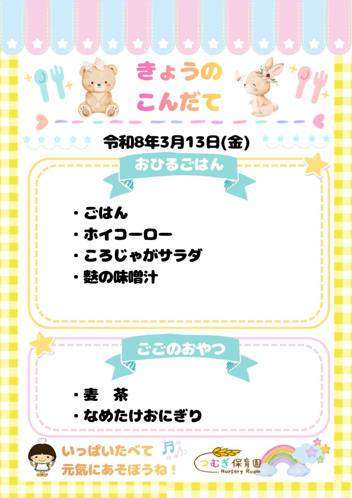 ⭐今日のつむぎ保育園の給食⭐