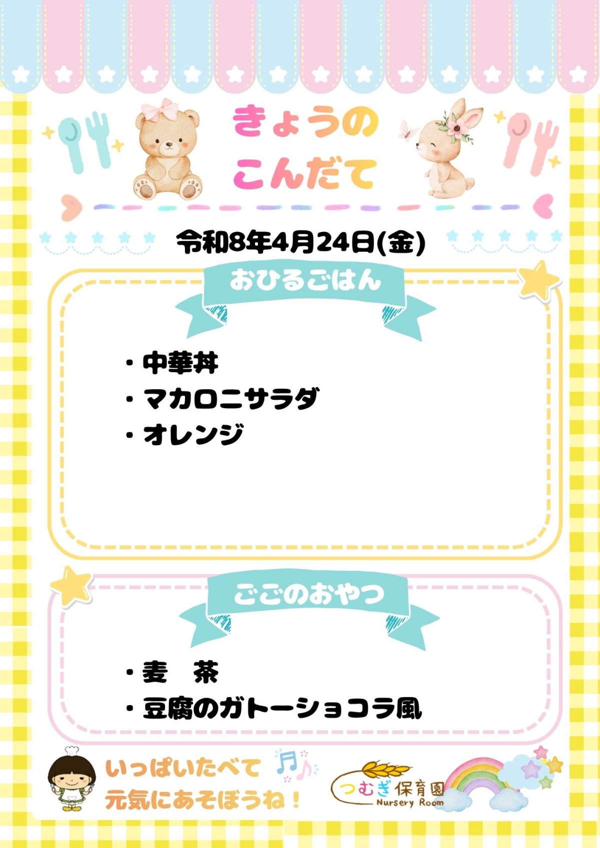 ⭐今日のつむぎ保育園の給食⭐
