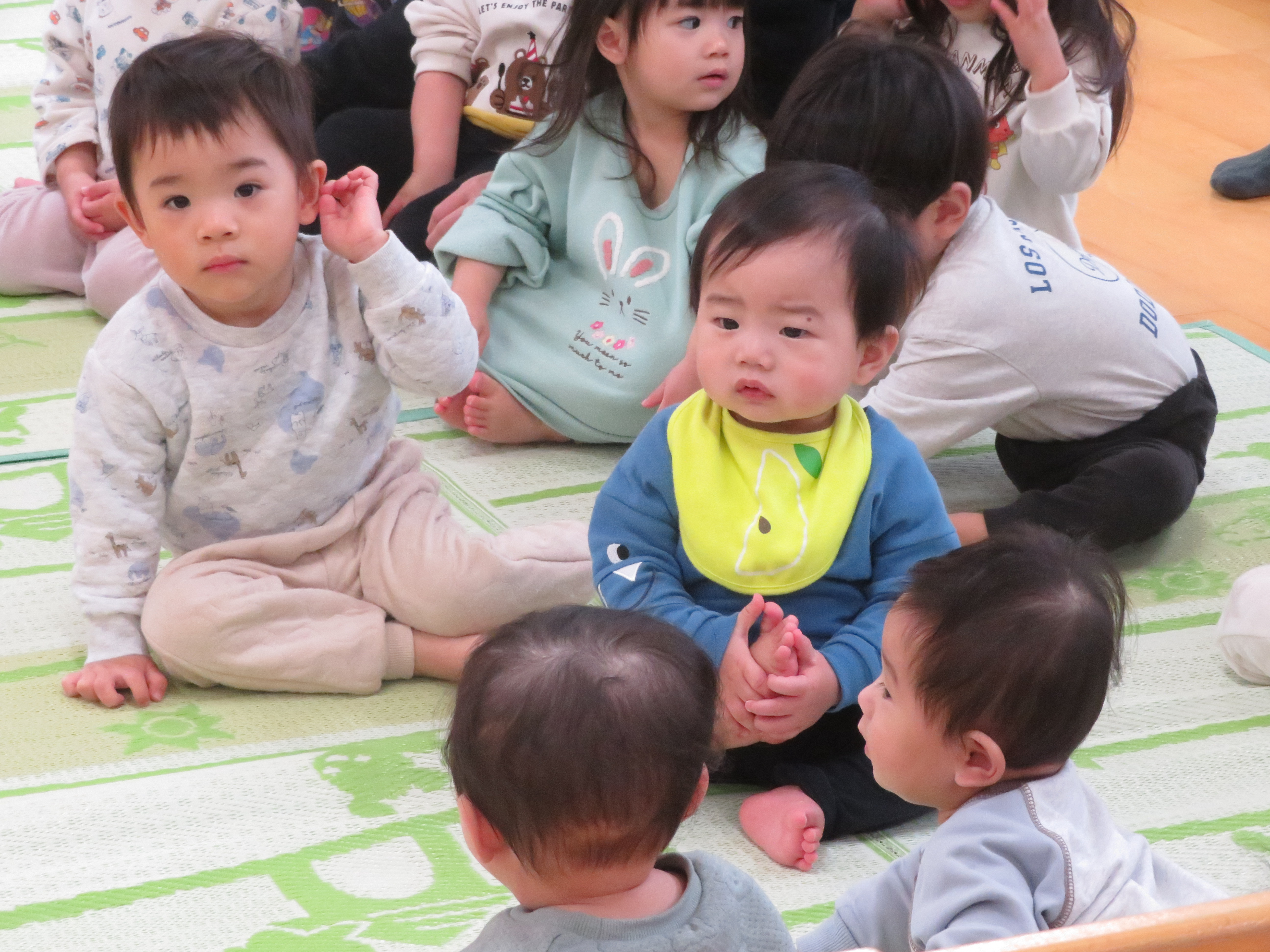 興味津々でずりばいで見ようとする赤ちゃんもいましたよ(*^▽^*)