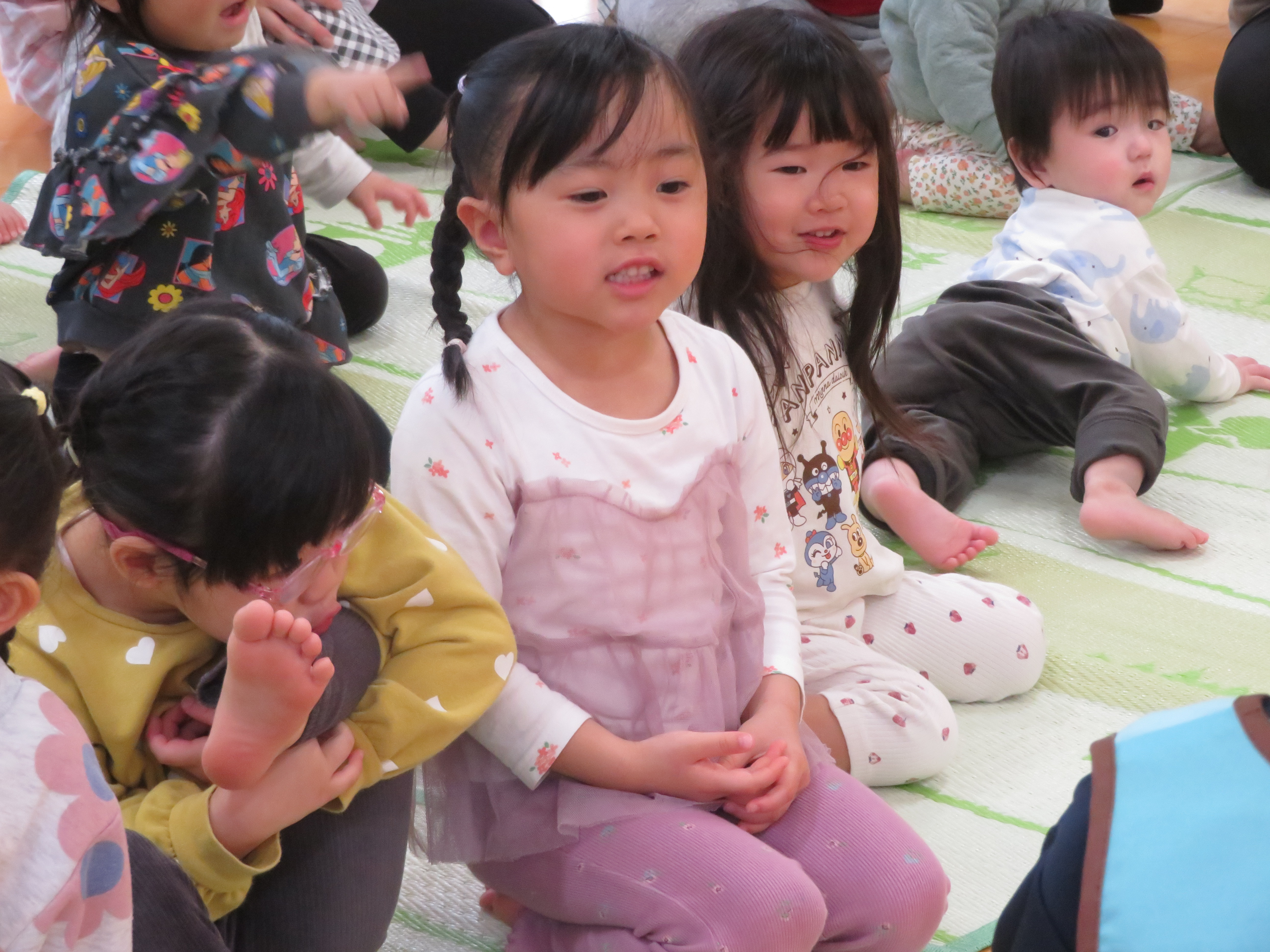 ひな祭りについての紙芝居を見たり、『うれしいひなまつり』の歌を歌ったりして雰囲気を味わいました🎎