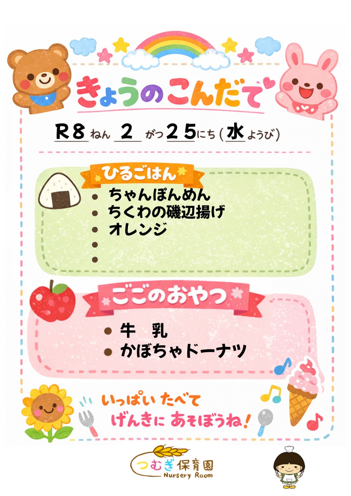 ⭐今日のつむぎ保育園の給食⭐