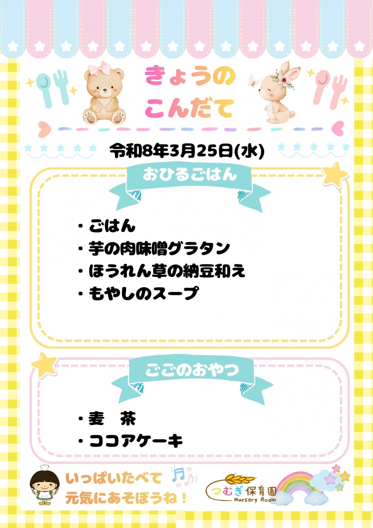 ⭐今日のつむぎ保育園の給食⭐